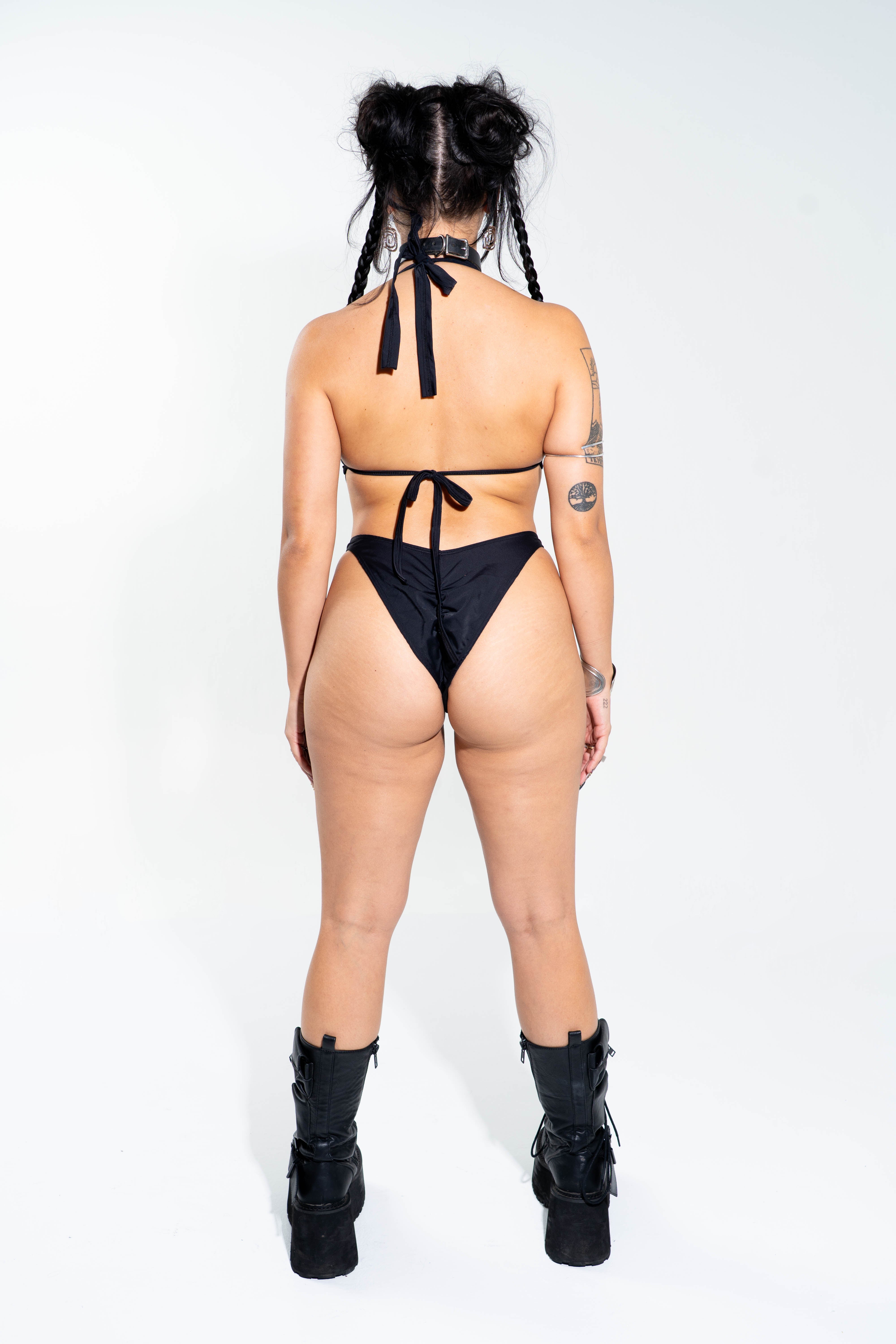 The Cage Bodysuit is a daring blend of witchy allure and vampire-core edge. Featuring strappy cutouts and metal ring details, this piece is built to turn heads whether under neon lights or moonlit skies. Perfect for festival nights at III Points, EDCO, Escape, and beyond.